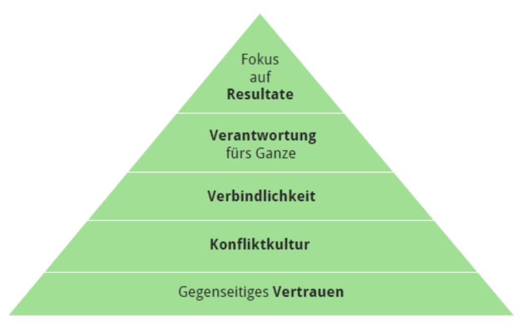 Ohne Vertrauen ist ein Team auf kurz oder lang tot. Oder wie Steven Covey sagt: Ohne Vertrauen leidet ein Team unter einer unheilbaren Krankheit und wird auf kurz oder lang dahinsiechen und letztlich den frühzeitigen Tod sterben. Patrik Lencioni fasst in seiner Teampyramide die 5 wesentlichen Merkmale erfolgreicher Teams zusammen: